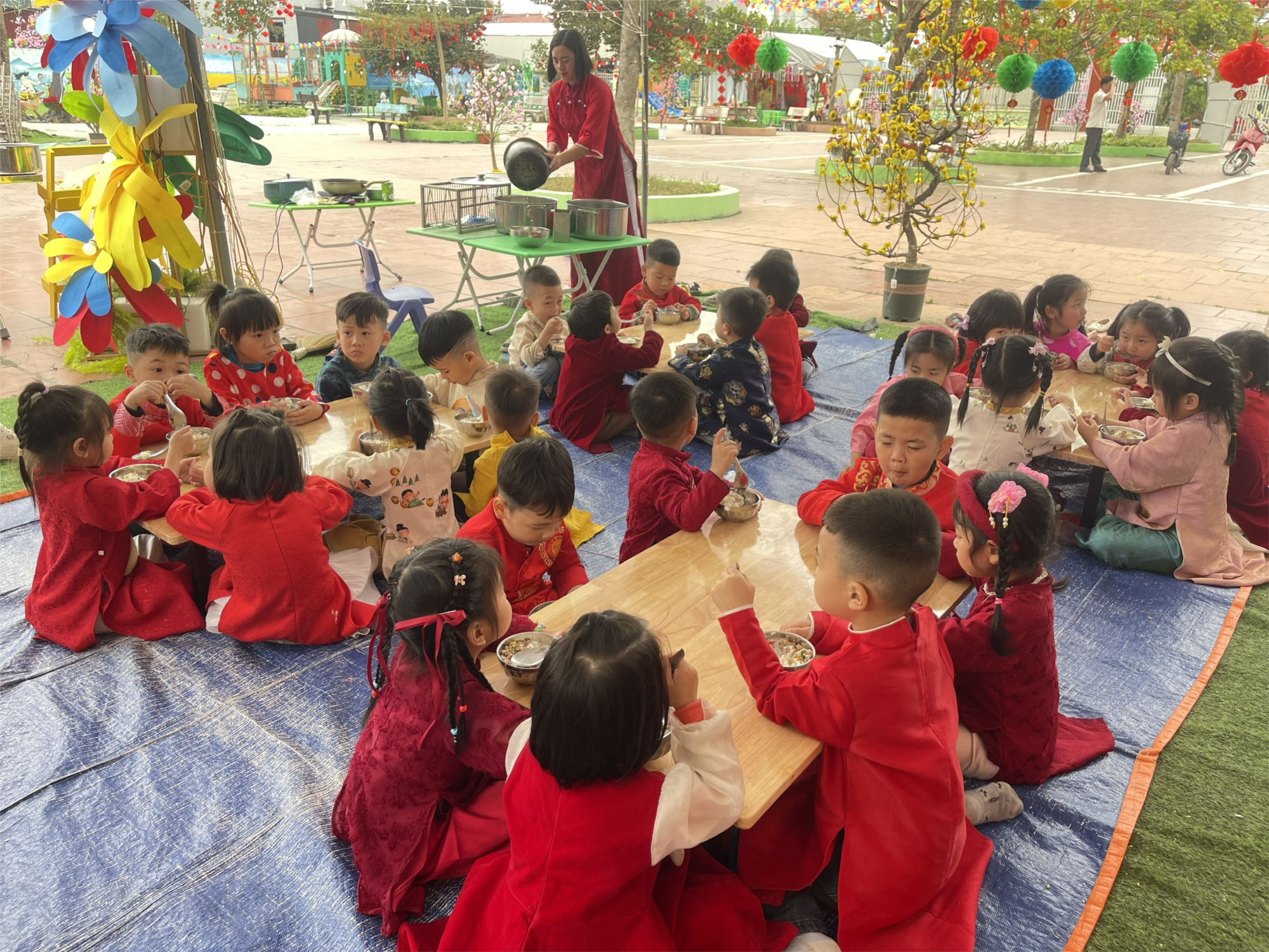 Bữa cơm trưa rộn rã trong ngày Tết cuối năm của các bé lớp 4TB1