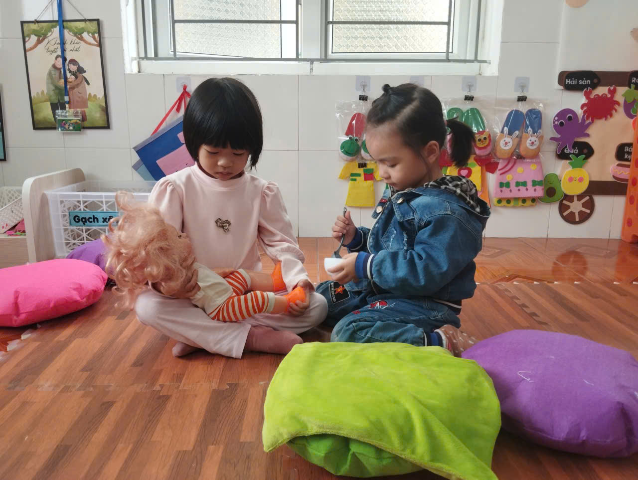 Dễ nhận thấy, hoạt động này tạo ra các tình huống thực tế mà trẻ có thể áp dụng ngôn ngữ một cách tự nhiên. Chẳng hạn, khi các em mô phỏng cuộc sống hàng ngày trong góc chơi vai như cửa hàng, nhà hàng, hoặc bác sĩ thì phải phải sử dụng ngôn ngữ để tương tác với nhau. Điều này giúp họ học cách sử dụng từ vựng và câu trò chuyện trong ngữ cảnh phù hợp.