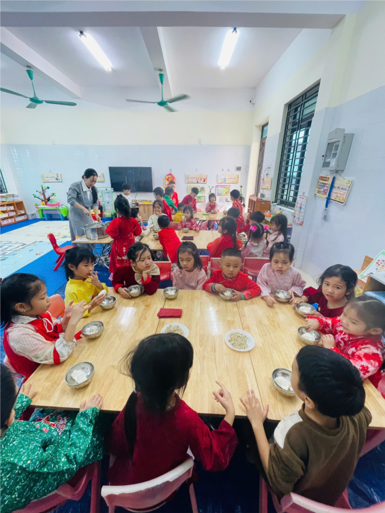 Các bé với hoạt động ‘'Giã muối vừng” đã có thêm nhiều trải nghiệm thú vị: biết cách bỏ vỏ lạc sao cho nhanh nhất, giã lạc, giã vừng và trộn với muối tinh. Ngoài ra các con còn biết thêm về một món ăn dân dã của cha ông xưa mà khi ăn ta cảm thấy ngon đến lạ thường.