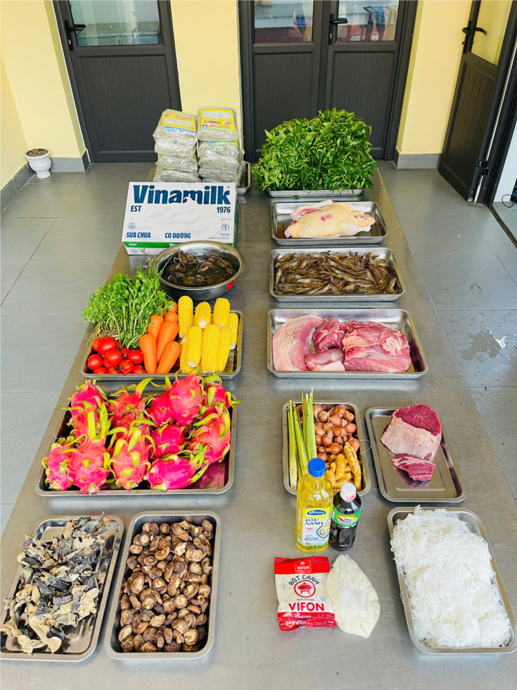 ✍️Từng món ăn được lựa chọn kỹ càng từ khâu nguyên liệu. Ngay khi thực phẩm được giao đến, các cô phụ trách bếp và bộ phận nhận hàng đều có mặt đầy đủ để kiểm tra chất lượng – từ màu sắc, mùi vị, hạn sử dụng cho đến nguồn gốc xuất xứ.