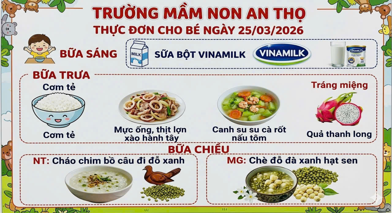 🍱 Thực đơn "Vào bếp cùng cô nuôi" ngày 25/03: