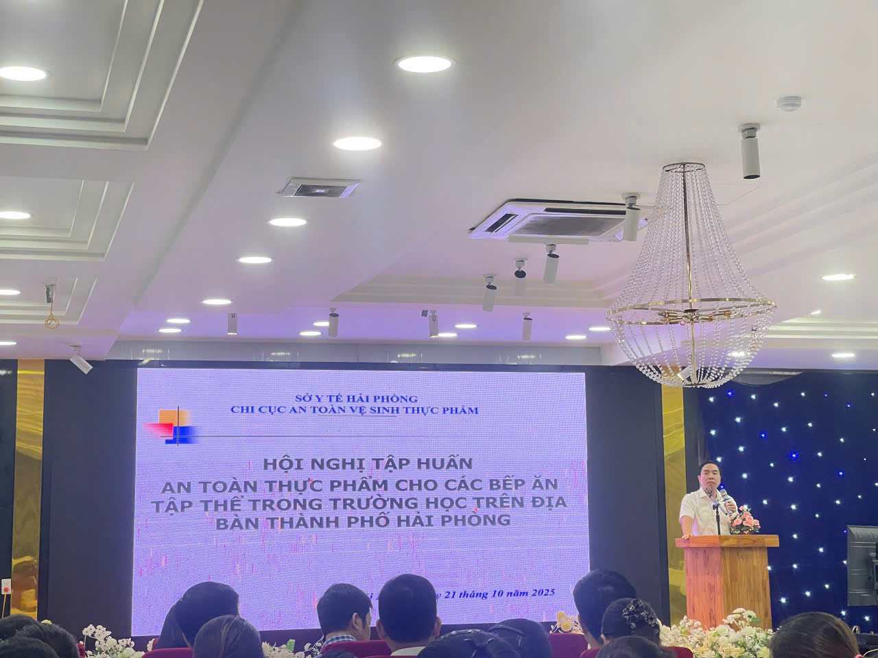 Tại buổi tập huấn các học viên được giảng viên của Khoa An toàn thực phẩm của Trung tâm Y tế khu vực Hải Phòng phổ biến những nội dung về: Kiến thức chuyên môn liên quan đến ATTP; các văn bản pháp luật và các quy định hiện hành về ATTP trong trường học; Quy định đảm bảo bếp ăn một chiều, thực hành vệ sinh cá nhân, vệ sinh dụng cụ, dụng cụ chế biến thực phẩm; quy định về lưu mẫu thức ăn, quản lý khẩu phần ăn; các nguyên nhân gây ngộ độc thực phẩm, dấu hiệu nhận biết và biện pháp xử lý ban đầu, biện pháp phòng các bệnh lây truyền qua thực phẩm; trách nhiệm của ban giám hiệu nhà trường trong công tác quản lý VSATTP, quản lý, giám sát các tiêu chí về ATTP của bếp ăn bán trú.