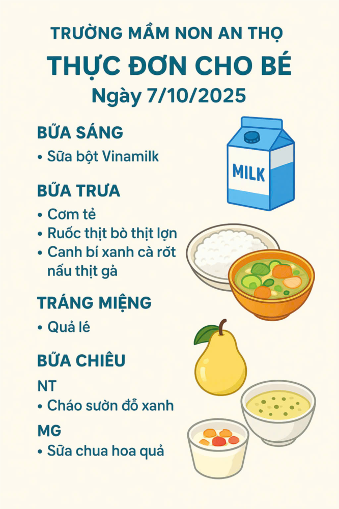Cứ mỗi ngày các bé tại trường mầm non An Thọ lại được thưởng thức những món ăn ngon với đa dạng thực phẩm nhằm kích thích sự ngon miệng và giúp trẻ làm quen với nhiều loại thực phẩm khác nhau. Các nguyên liệu đều được lựa chọn kỹ lưỡng từ các đơn vị cung cấp uy tín, đảm bảo nguồn gốc xuất xứ rõ ràng, tươi sạch và an toàn💕