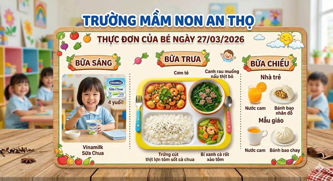 🍱 THỰC ĐƠN DINH DƯỠNG: "BỮA ĂN NGON, CON KHỎE MẠNH" – NGÀY 27/03/2026