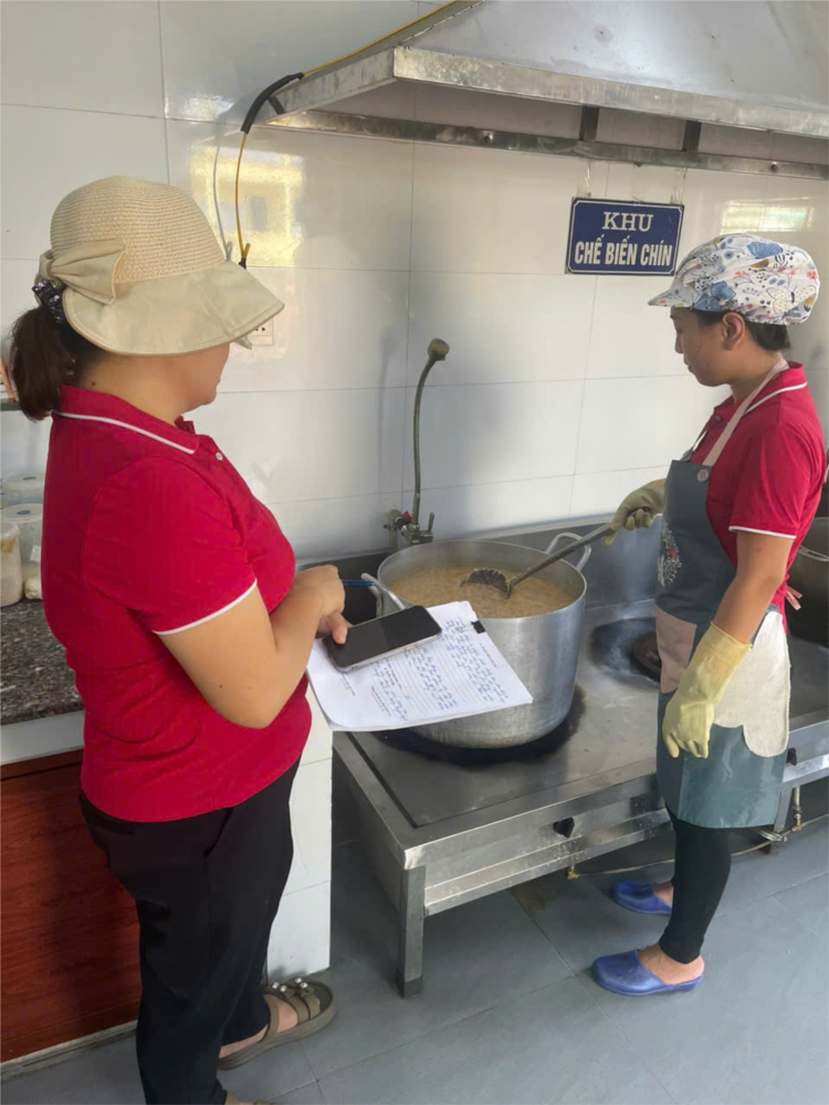 Thực hiện kế hoạch kiểm tra nội bộ trong nhà trường, sáng nay, ngày 17/10/2025 nhà trường tiến hành kiểm tra nội bộ nhân viên nấu ăn để đánh giá việc thực hiện chuyên môn và đánh giá năng lực nhân viên nấu ăn của đồng chí Trần Đỗ Bảo Châu - nhân viên nấu ăn tại bếp ăn trường mầm non An Thọ.