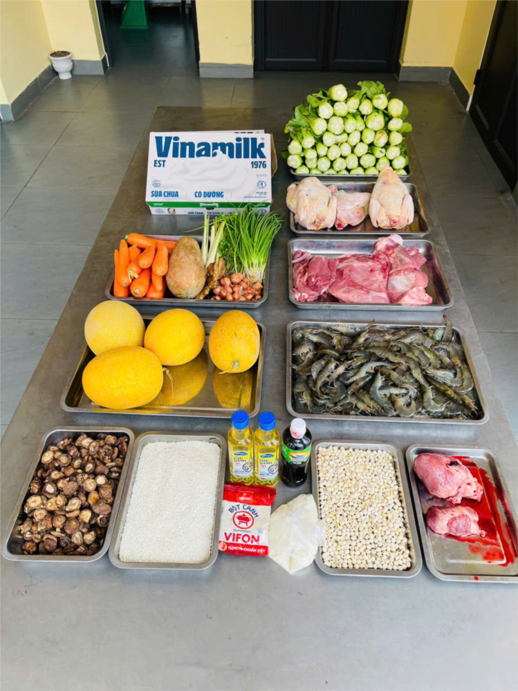 Dưới đây là hình ảnh thực phẩm tại bếp ăn bán trú của nhà trường ngày 28 tháng 10 năm 2025.