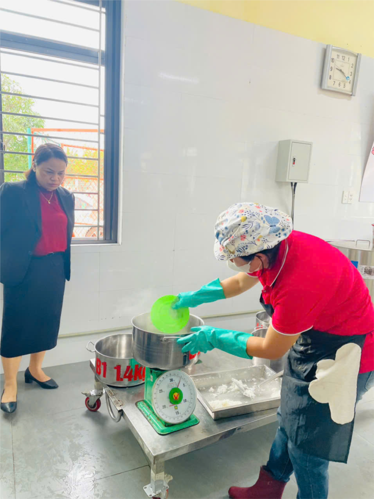 Hằng này công tác giao nhân thực phẩm nhà trường đều có sự giám sát của đồng chí Phạm Thị Huyền Phó HT phụ trách nuôi dưỡng và đại diện phụ huynh học sinh.
