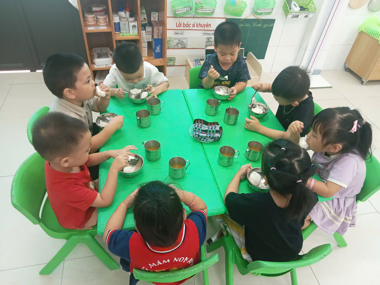 Bữa phụ chiều với bánh bao và nước cam mang lại nhiều lợi ích cho sức khỏe của trẻ mầm non. Bánh bao cung cấp tinh bột và đạm, giúp bổ sung năng lượng cần thiết sau giờ học, hỗ trợ phát triển thể chất. Nước cam giàu vitamin C và khoáng chất, giúp tăng cường sức đề kháng, hỗ trợ tiêu hóa và hấp thu sắt tốt hơn. Sự kết hợp này không chỉ giúp trẻ no lâu, duy trì năng lượng ổn định đến cuối ngày mà còn hình thành thói quen ăn uống lành mạnh, cân đối dinh dưỡng mỗi ngày.