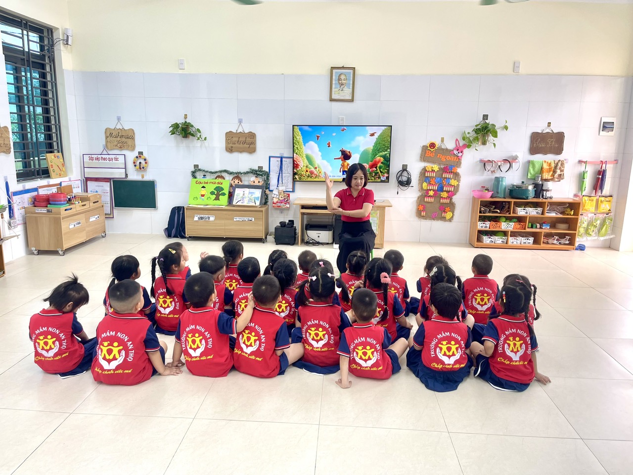 Giờ học phát triển ngôn ngữ có vai trò quan trọng trong quá trình hình thành và hoàn thiện kỹ năng giao tiếp của trẻ mầm non. Thông qua các hoạt động như trò chuyện, kể chuyện, trẻ được mở rộng vốn từ, biết sử dụng câu từ đúng ngữ pháp và diễn đạt ý nghĩ mạch lạc, rõ ràng. Hoạt động này giúp trẻ mạnh dạn, tự tin khi giao tiếp với cô và bạn, rèn khả năng lắng nghe, đặt câu hỏi, thể hiện cảm xúc, suy nghĩ bằng lời nói. Đồng thời, giờ học còn góp phần phát triển tư duy, trí tưởng tượng, khả năng ghi nhớ và cảm thụ văn học. Việc rèn luyện ngôn ngữ sớm tạo nền tảng vững chắc cho việc học đọc, học viết sau này và giúp trẻ giao tiếp hiệu quả, hòa nhập tốt trong các mối quan hệ xã hội.