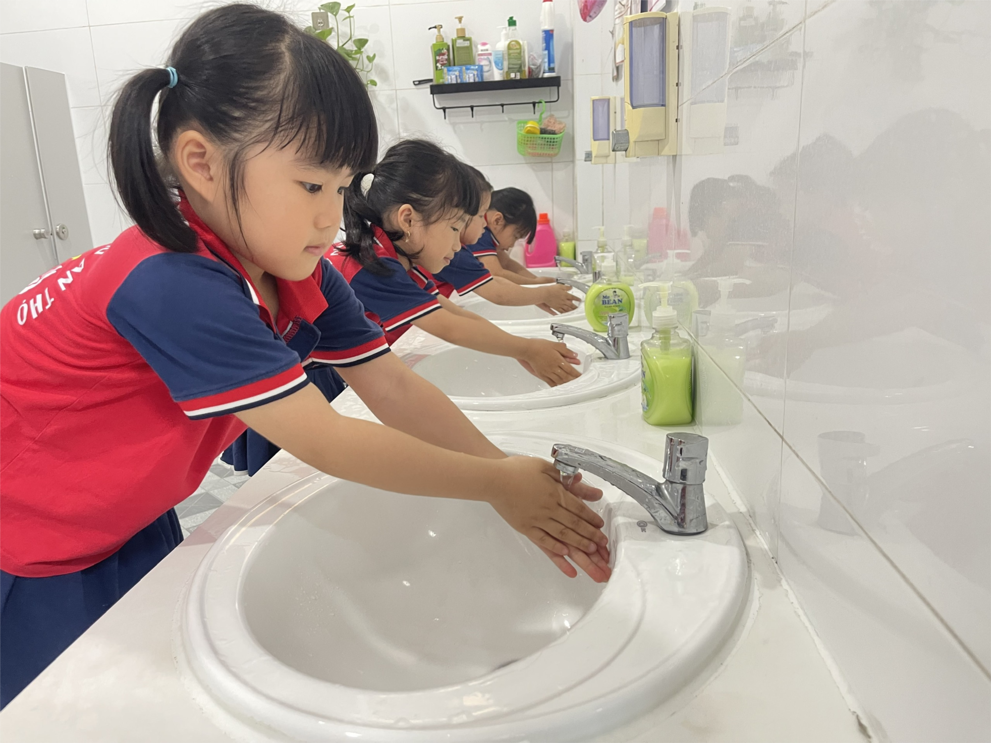 Ngoài ra, hoạt động rửa tay còn giúp rèn kỹ năng tự phục vụ và tính tự lập. Trẻ học cách mở vòi nước, lấy xà phòng, chà tay đúng cách, lau tay… Những việc nhỏ này nhưng giúp trẻ tự tin và chủ động hơn trong sinh hoạt hàng ngày.