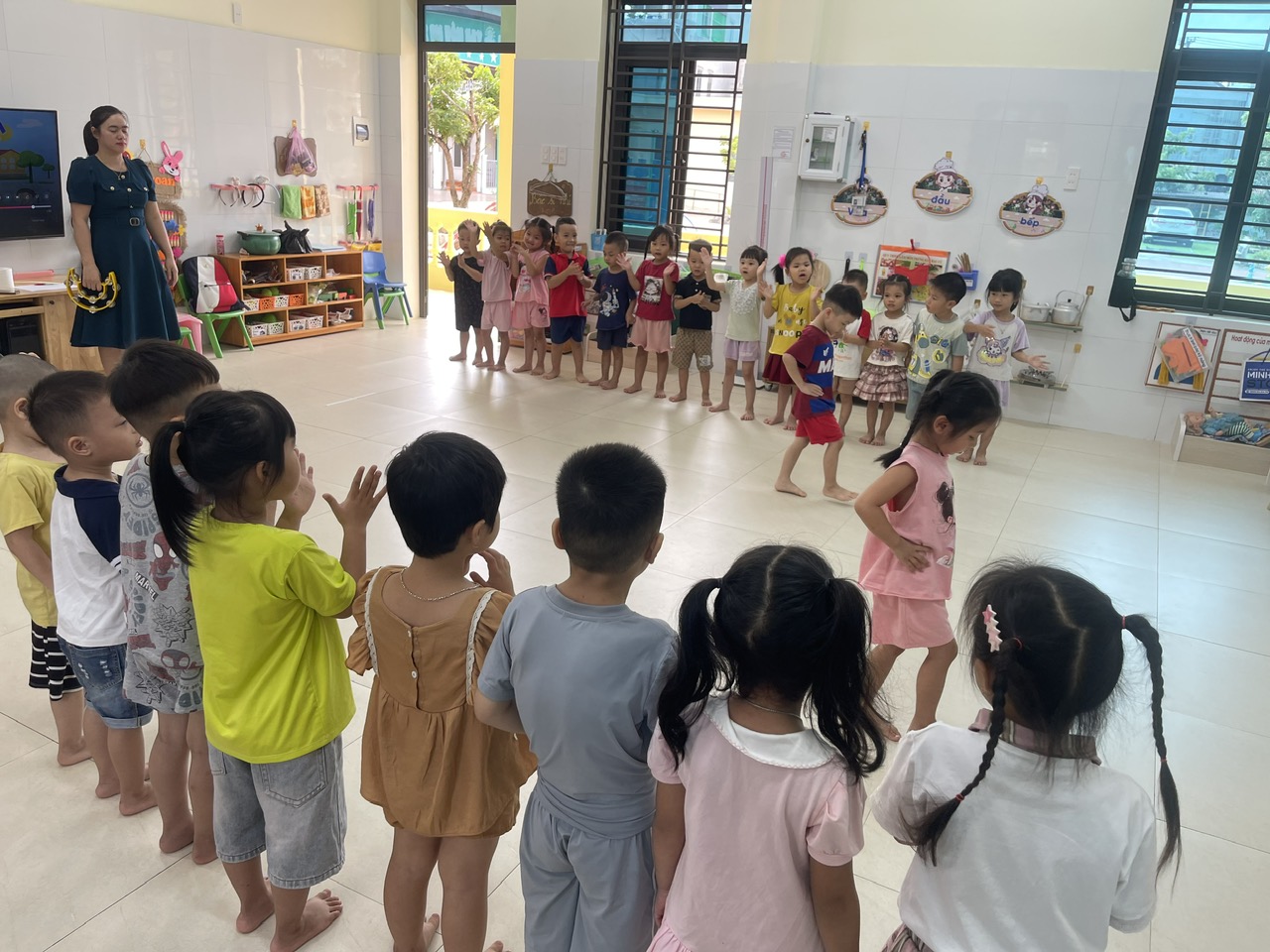 Hoạt động “Đi trên vạch kẻ sàn” là một bài tập phát triển vận động cơ bản giúp trẻ mầm non rèn luyện khả năng giữ thăng bằng, phối hợp nhịp nhàng các bộ phận cơ thể và tăng cường sự tập trung. Hoạt động có thể kết hợp nhiều hình thức sinh động như đi mang vật trên tay, đi theo nhịp trống, hoặc thi đua giữa các nhóm. Qua đó, trẻ không chỉ rèn luyện kỹ năng vận động tinh và thô mà còn hình thành tính kiên trì, tự tin, phối hợp linh hoạt trong vận động và cảm nhận được niềm vui khi cùng bạn bè tham gia hoạt động thể chất.