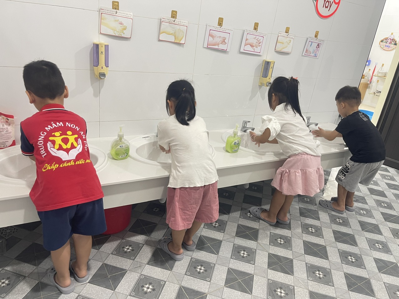 Ngoài lợi ích về sức khỏe, việc cùng nhau rửa tay còn giúp trẻ phát triển kỹ năng xã hội, biết chờ đợi, hợp tác với bạn và làm theo hướng dẫn của cô. Đây là một hoạt động nhỏ nhưng góp phần xây dựng nền tảng kỹ năng sống lành mạnh, giúp trẻ hình thành lối sống văn minh và ý thức bảo vệ bản thân từ những việc làm giản dị hằng ngày.