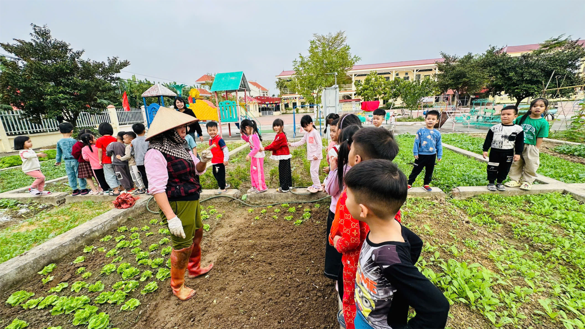 Các bé lớp 5TA1 quan sát vườn rau