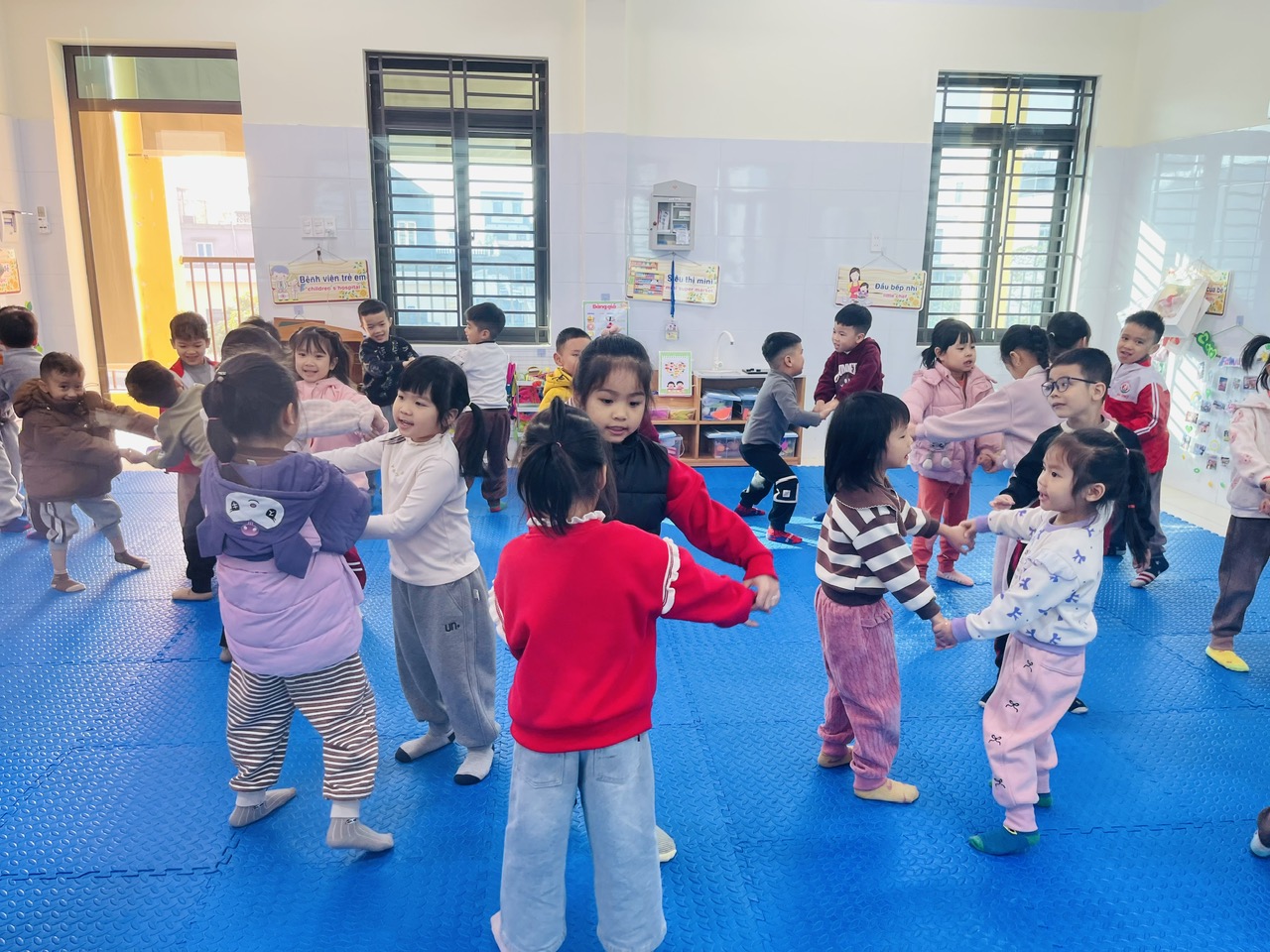 Tham gia vào các trò chơi vận động cho trẻ mầm non sẽ giúp bé cảm thấy thoải mái và thư giãn, đồng thời giải phóng năng lượng tích cực. Hoạt động thể chất cũng sẽ giúp trẻ tăng cường sức đề kháng và phát triển toàn diện hơn về mọi mặt.Các bé lớp 5TA1 chơi lộn cầu vồng