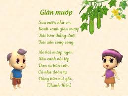 - Nhà thơ Thanh Hiền có 1 bài thơ rất hay nói về quả mướp đấy đó là bài thơ “Giàn mướp” đấy các con ạ. Hôm nay cô và các con hãy cùng nhau đọc thật hay bài thơ này nhé!