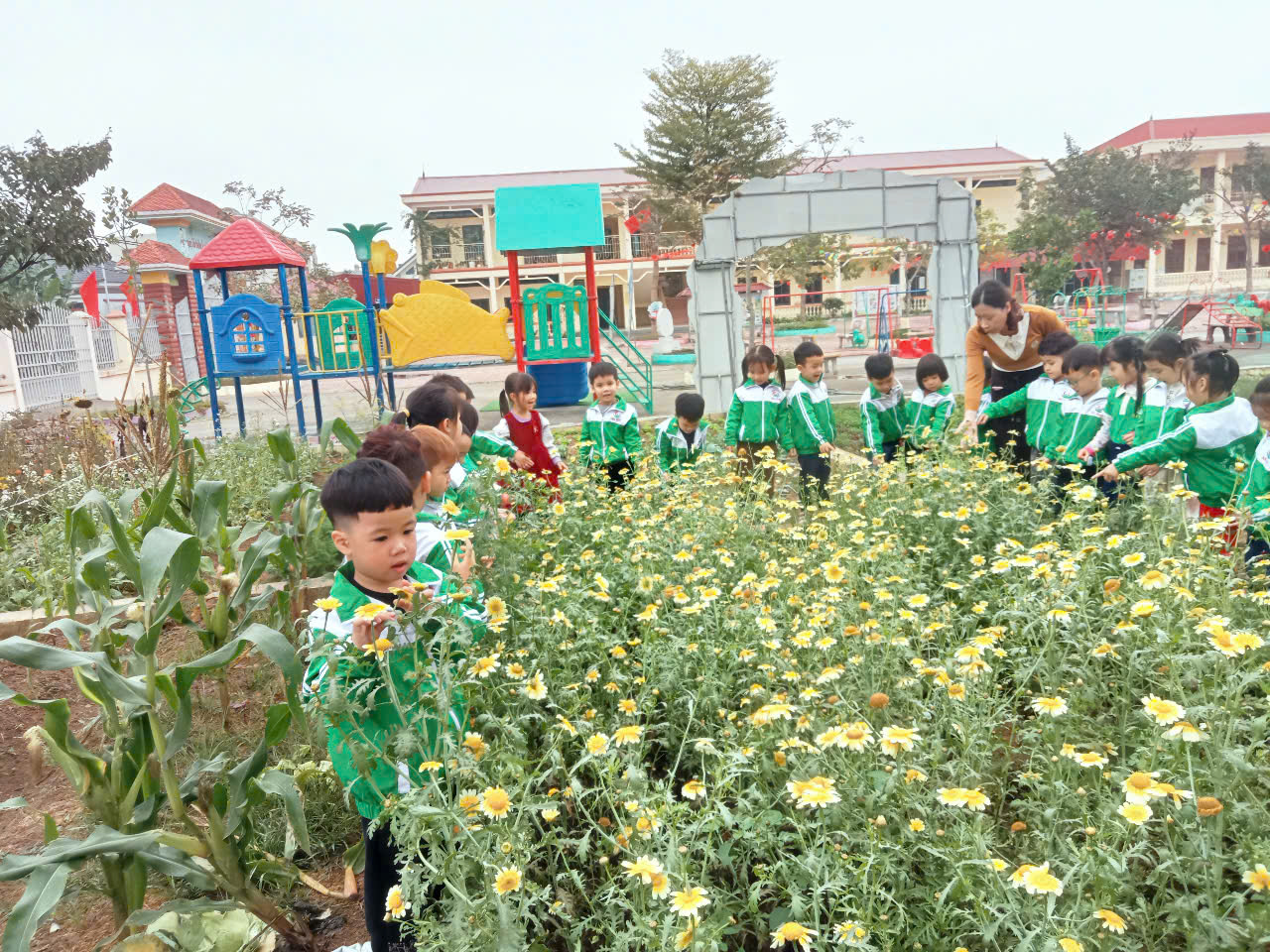 Sau đây một số hình ảnh trẻ dạo chơi ngoài trời "quan sát vườn hoa".