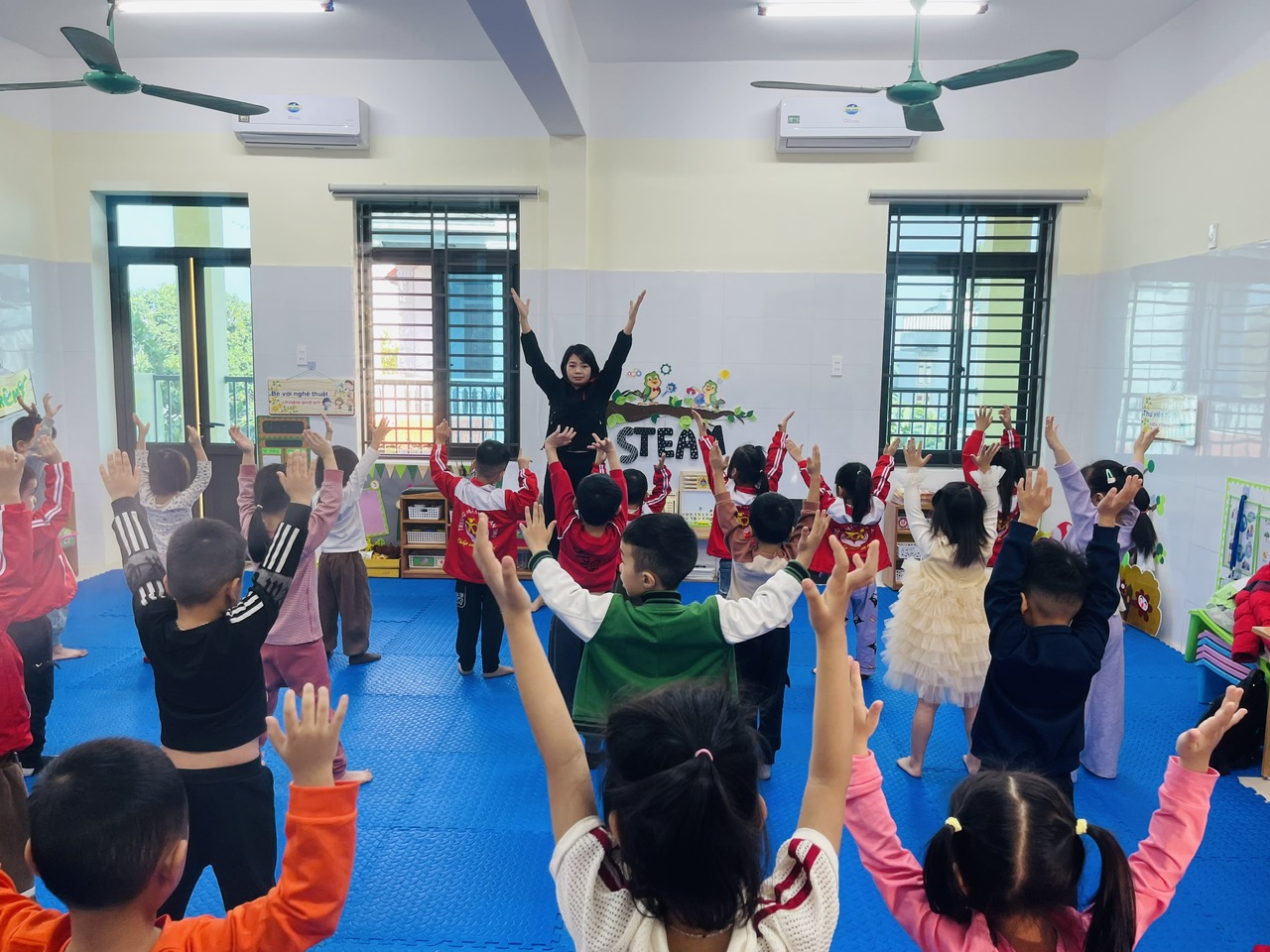 Giờ thể dục sáng có tác dụng quan trọng đối với sự phát triển toàn diện của trẻ mầm non. Hoạt động giúp trẻ khởi động cơ thể, tăng cường sức đề kháng, phát triển các tố chất vận động như nhanh nhẹn, khéo léo, dẻo dai và khả năng giữ thăng bằng. Thể dục sáng còn giúp trẻ hình thành thói quen rèn luyện thân thể, tinh thần sảng khoái, chuẩn bị năng lượng tích