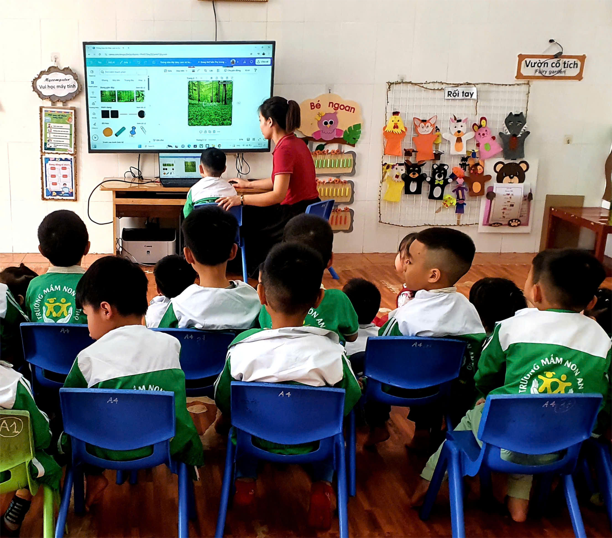 Với mục tiêu mang lại sự mới mẻ và sinh động cho hoạt động kể chuyện, Lớp 4tb3 ứng dụng công nghệ AI và Canva vào các buổi học, giúp các bé không chỉ hào hứng hơn mà còn phát triển kỹ năng ngôn ngữ và tư duy sáng tạo.