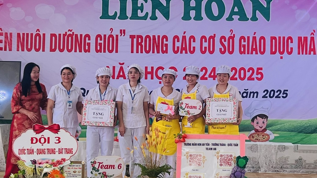🌺Cụm 3 trường Mầm non An Thọ, An Thái, Mỹ Đức thành lập 1 đội mang tên TEAM 5. Trong đó trường Mầm non An Thọ có cô Lê Thị Ngân đã cùng với các thành viên của đội mình tham gia tranh tài ở 2 nội dung: Thi lý thuyết kiểm tra kiến thức về dinh dưỡng trẻ mầm non, vệ sinh an toàn thực phẩm, kỹ thuật chế biến món ăn, xây dựng thực đơn, tính khẩu phần, xử lý tình huống trong quá trình chế biến/chuẩn bị bữa ăn cho trẻ; Thi thực hành, mỗi đội chế biến món ăn bữa chính buổi trưa cho trẻ với mức tiền ăn và chế độ ăn là 23.000đ/trẻ.