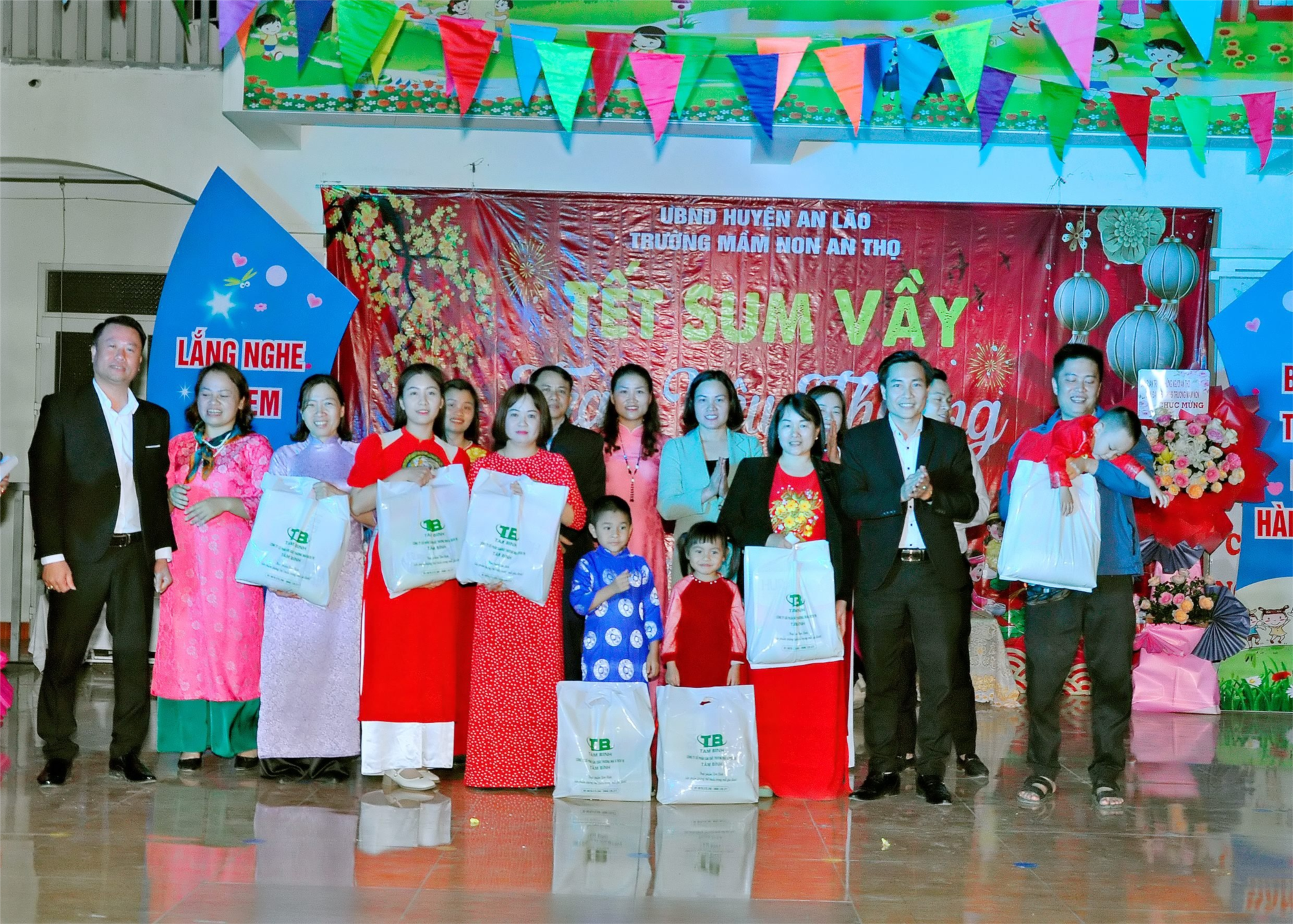 hội cha mẹ học sinh, nhà cung cấp thực phẩm Tâm Bình các bậc phụ huynh đã đến dự, chúc mừng và tặng quà, cho các bạn nhỏ có hoàn cảnh khó khăn nhân dịp hội chợ xuân diễn ra tại trường cho cô trò trường mầm non An Thọ.