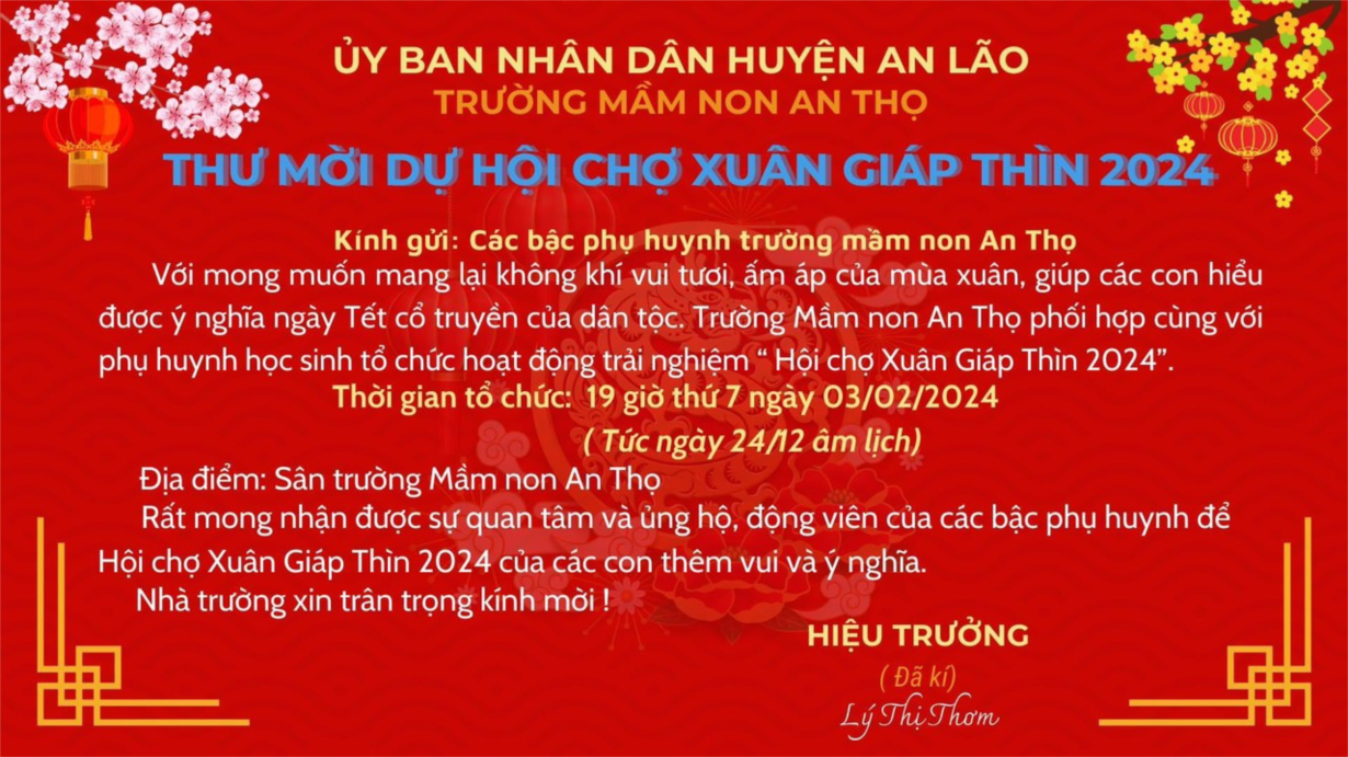 🎉Vì vậy Trường MN An Thọ trân trọng tổ chức lễ hội: “ HỘI CHỢ XUÂN GIÁP THÌN 2024"