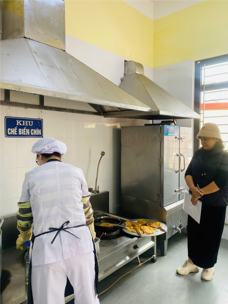 Cùng các nhân viên nấu ăn tại bếp ăn.