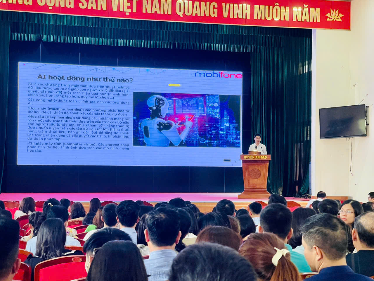 Thông qua buổi tập huấn các cán bộ quản lý, giáo viên đã có thêm kiến thức bổ ích về ứng dụng AI, cũng như sử dụng các phần mềm để tạo ra bài giảng hay, sinh động. Ngoài ra tại buổi tập huấn các cán bô, giáo viên còn được hướng dẫn sử dụng ứng dụng VNeiD (Việt Nam Electronic Identification – định danh điện tử Việt Nam) trong giải quyết thủ tục hành chính, dịch vụ hành chính công và các giao dịch khác trên môi trường điện tử.