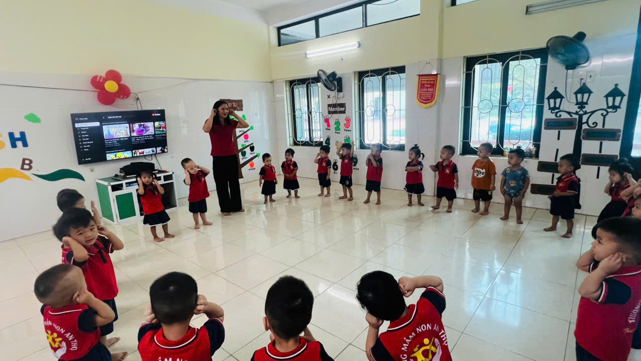 Mỗi buổi sáng tại lớp Nhà trẻ D2, Trường Mầm non An Thọ lại rộn ràng tiếng nhạc và nụ cười trong trẻo của các bé khi cùng nhau tập thể dục. Những cánh tay nhỏ xinh giơ cao, đôi bàn chân bước nhịp nhàng theo điệu nhạc không chỉ mang lại bầu không khí vui tươi, mà còn giúp cơ thể các con khỏe mạnh, dẻo dai ngay từ đầu ngày. Thể dục buổi sáng giống như một làn gió mới, đánh thức tinh thần, khơi dậy sự hứng khởi để trẻ sẵn sàng tham gia mọi hoạt động trong ngày. Qua từng động tác đơn giản, trẻ được rèn sự nhanh nhẹn, khéo léo, nuôi dưỡng tinh thần đoàn kết và niềm vui bên bạn bè. Đây chính là món quà quý giá mà các cô giáo lớp D2 gửi tặng các con mỗi ngày, để tuổi thơ thêm nhiều sắc màu tươi đẹp.