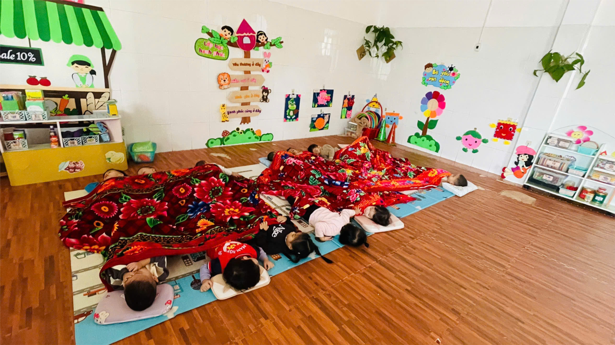 Cô giáo ân cần chỉnh từng góc chăn 🧺, vuốt mái tóc mềm của bé 👶💗, khẽ đặt tay lên đôi vai nhỏ để các con dễ dàng chìm vào giấc ngủ sâu 😴🌙. Những khuôn mặt thơ ngây, những nhịp thở đều đều chính là khoảnh khắc đẹp nhất trong ngày – khi các con được nghỉ ngơi và nạp lại năng lượng cho buổi chiều đầy hứng khởi 🌈🌟.