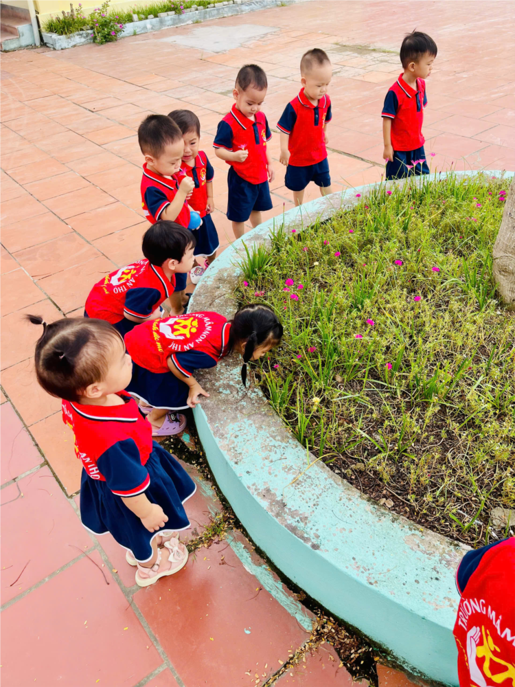 Hoạt động ngoài trời luôn mang lại cho các bé lớp Nhà trẻ D2, Trường Mầm non An Thọ nhiều trải nghiệm thú vị và bổ ích. Trong buổi quan sát bồn hoa, các con được hòa mình vào thiên nhiên, hít thở không khí trong lành và khám phá vẻ đẹp rực rỡ của những bông hoa đang khoe sắc. Dưới sự hướng dẫn tận tình của cô giáo, các bé chăm chú quan sát màu sắc, hình dáng, mùi hương của từng loài hoa, từ đó hình thành tình yêu thiên nhiên và biết trân trọng cái đẹp quanh mình. Hoạt động không chỉ giúp trẻ phát triển khả năng quan sát, tư duy ngôn ngữ, mà còn nuôi dưỡng sự hồn nhiên, tò mò, khuyến khích trẻ mạnh dạn chia sẻ cảm nhận với cô và bạn bè. Đây là những phút giây nhẹ nhàng nhưng đầy ý nghĩa, góp phần làm phong phú thêm thế giới tuổi thơ trong sáng của các con.