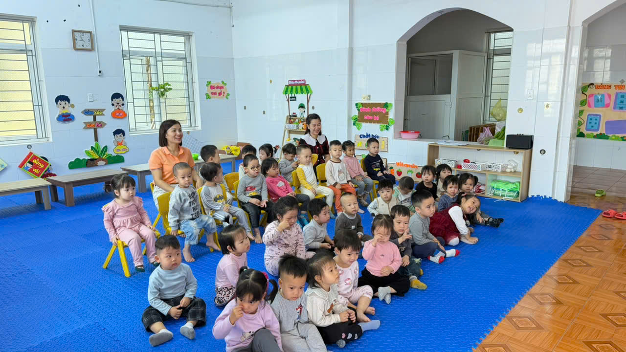 Dù còn bé, các con đã được làm quen với không khí sinh hoạt tập thể nghiêm túc, ngồi ngay ngắn, chăm chú lắng nghe 👀✨. Đây cũng là dịp để giáo dục các con về tinh thần kỷ luật, nề nếp và ý thức tham gia các hoạt động chung.