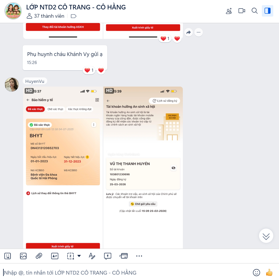 Chụp ảnh màn hình đã kích hoạt thành công (hoặc thông tin của bé đã tích hợp) gửi vào nhóm lớp để cô giáo tổng hợp báo cáo nhà trường.