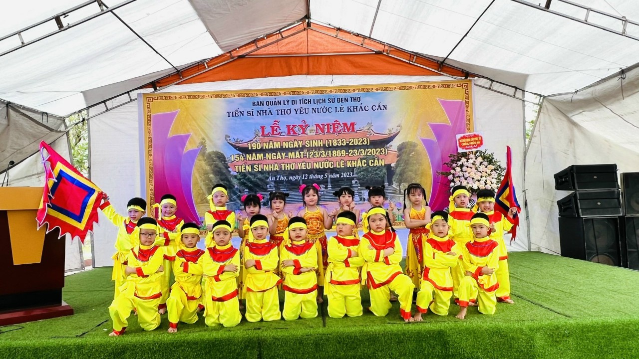 Sáng ngày 24 tháng 5 năm 2023 các bé lớp 5 Tuổi A1 có các tiết mục tham gia tại Lễ kỉ niệm 190 năm ngày sinh (1833-2023) 154 năm ngày mất (23/3/1869- 23/3/2023) của Tiến sĩ nhà thơ yêu nước LÊ KHẮC CẨN.